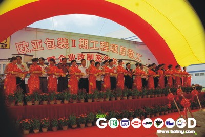 歐亞公司根據自身的發展需要,與招商證券、鵬城會計師事務所,廣東君言律師事務所簽約合作,對歐亞公司進行股份制改造, 我們相信,歐亞包裝公司今后將更高速發展,在國內IPO融資,并與廣大投資者共享公司的快速發展成果。